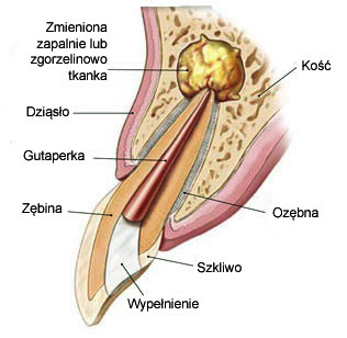 przewlekłe, nie gojące się stany zapalne wokół wierzchołka korzenia zeba,