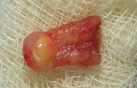 i torbiel która jest mocno zrośnięta z korzeniem.