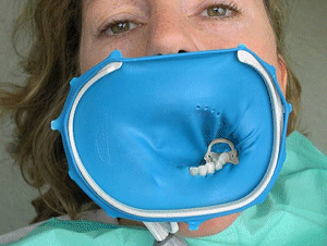 ząb od jamy ustnej używając tzw. koferdam, na zdjęciu poniżej.
